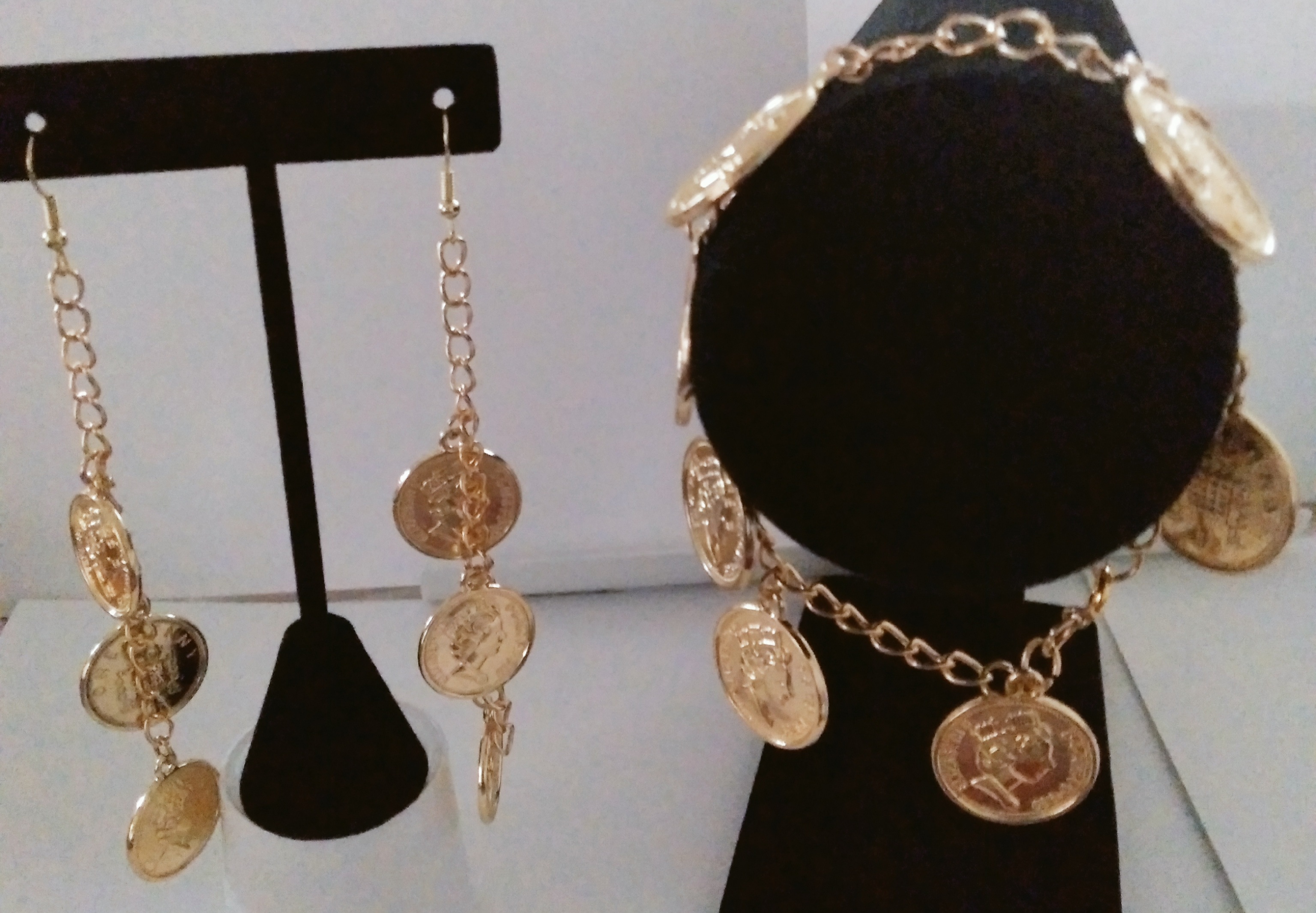Handmade Unique Penny STAMP ON Back And Queen Elizabeth Head ON FRONT Gold Chain Earrings and Bracelet Fashion Metal